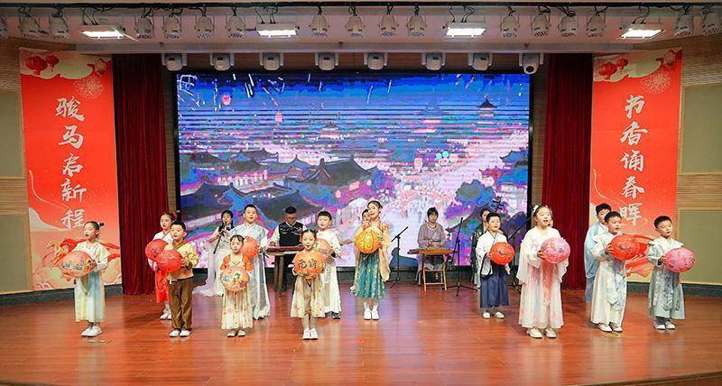 元宵节音阅会在激昂的民乐《赛马》旋律中拉开帷幕。整场演出以民乐演奏、诗词吟诵、情景演绎等艺术形式为载体,分“骏马踏春来”“月上柳梢头”“春江花夜月”“灯明月满楼”四个篇章次第展开,生动展现了元宵民俗与古典文学交融之美。相声《闹元宵》以诙谐风趣的语言演绎节日习俗,情景朗诵《打春图》鲜活呈现春日盎然生机,《诗经·月出》《生查子·元夕》《青玉案·元夕》等经典诗词吟诵与民乐演奏相得益彰、古韵悠扬。